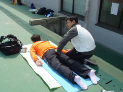 整体ボランティアとして参加される選手の方のウォーミングアップのお手伝いやアドバイスができないかということで行ってみました。