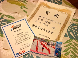 今日、トライアスロン伊良湖大会の賞状が届きました。